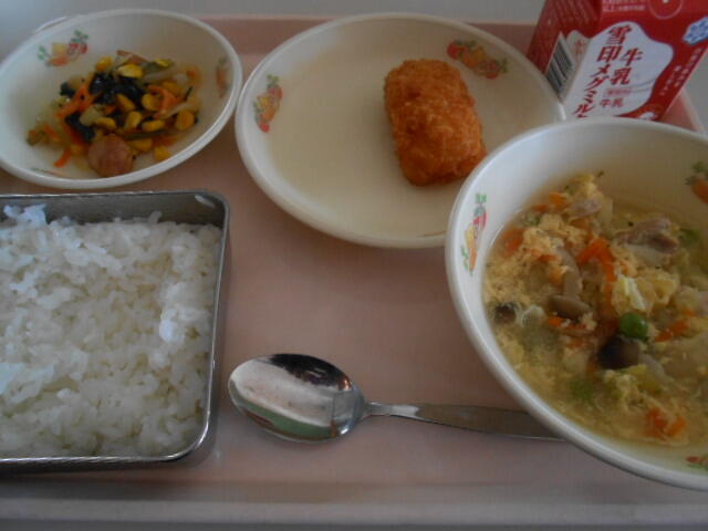 主なメニュー:クリームコロッケ、ほうれん草とコーンのソテー、たまごスープ