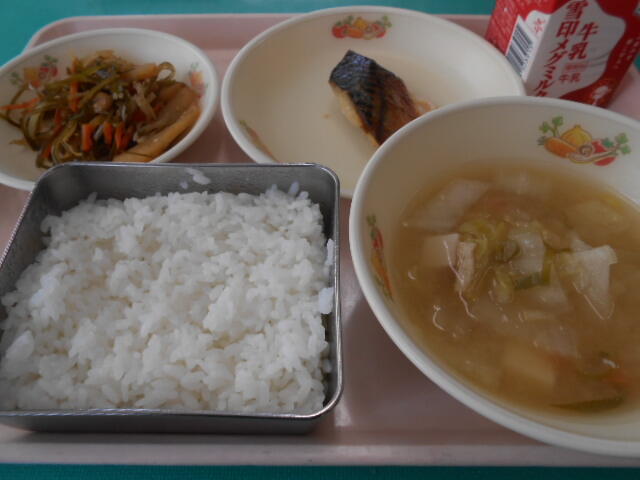 主なメニュー:さばの塩焼き、切り干し大根のカレー煮、なめこ汁