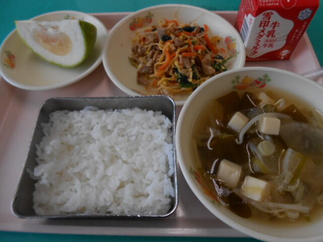 主なメニュー:ビビンバの具、ワカメスープ、スウィーティー