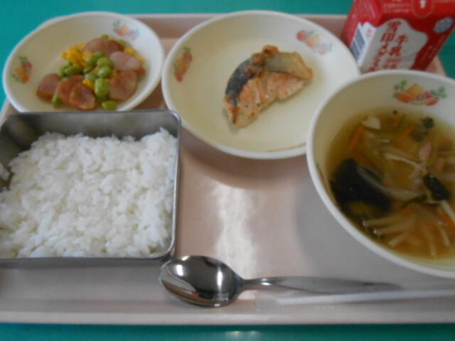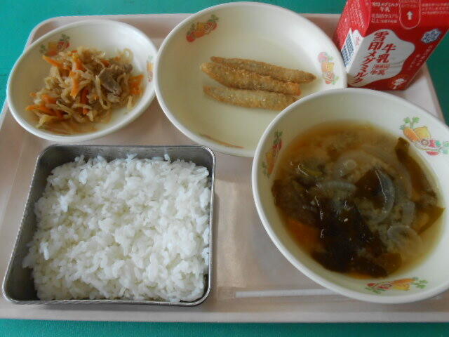 主なメニュー:いわしの梅煮、五目豆、ワカメの味噌汁