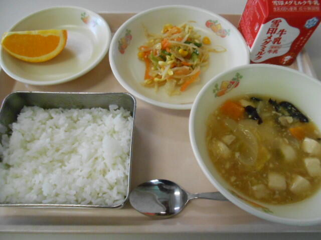 主なメニュー:マーボー豆腐、かみかみサラダ、オレンジ