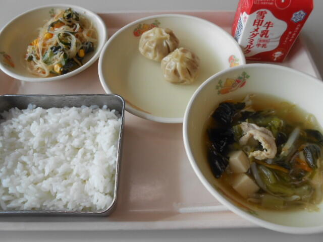 主なメニュー:しょーろんぽー(2個)、はるさめサラダ、中華スープ