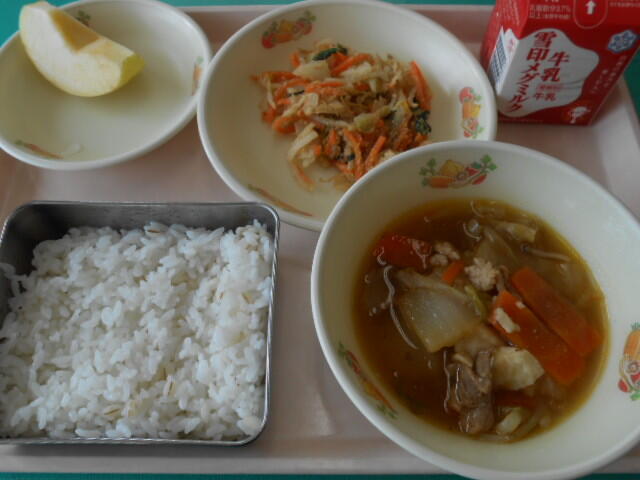 主なメニュー:ツナじゃが、ごま和え、りんご