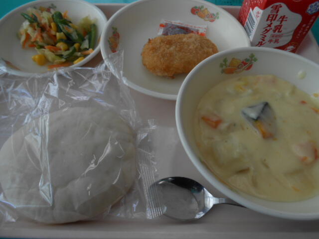 主なメニュー:北海道だんしゃくコロッケ、パックソース、北海道野菜のサラダ、かぼちゃのシチュー,米粉フォカッチャ