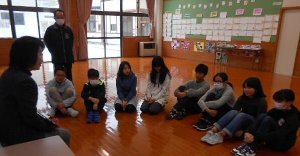 松岩小学校に着くと、各クラス代表児童が笑顔で迎えに来てくれました。