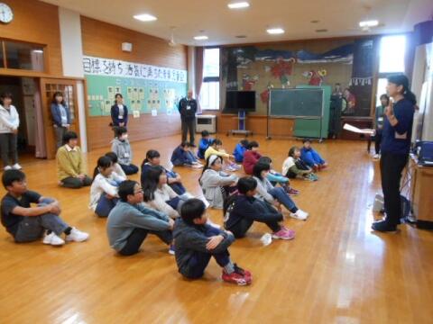 全児童が多目的ホールに集まり、目の大切さについての寸劇を楽しみました。これからも、テレビの視聴時間、ゲームの時間、勉強するときの姿勢等に気を付けてほしいものです。