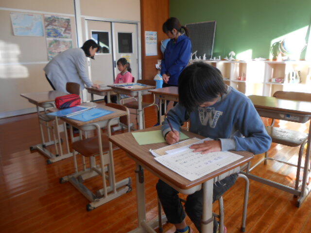 低学年 3学期のめあてを決めています。「むずかしいかんじをおぼえたいです」