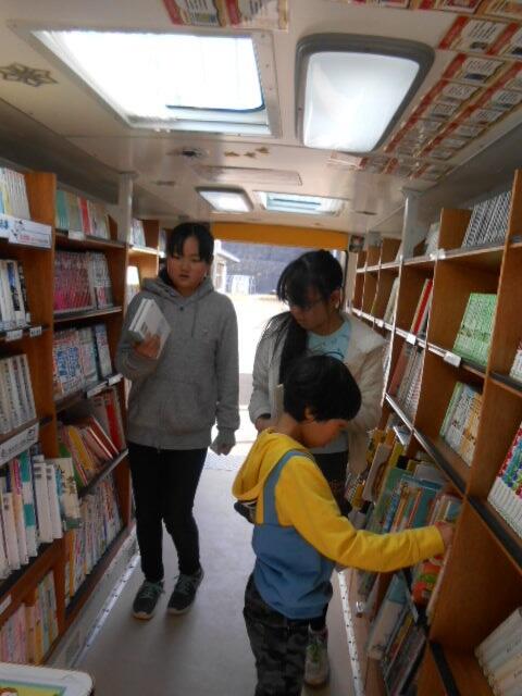 気仙沼市図書館の「おおぞら号」が来校しました。