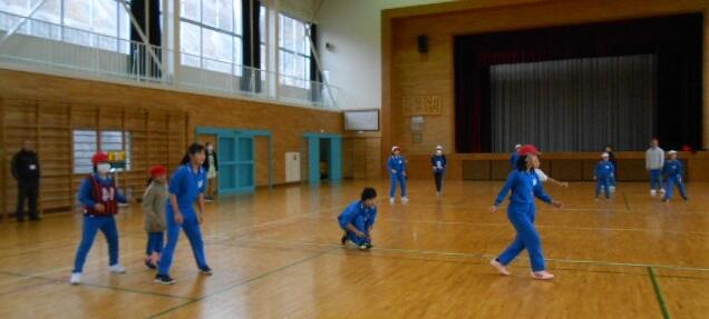 体育館で「ふえおに」をしました。紅白それぞれから一人の鬼を決めて開始です。制限時間は3分。
