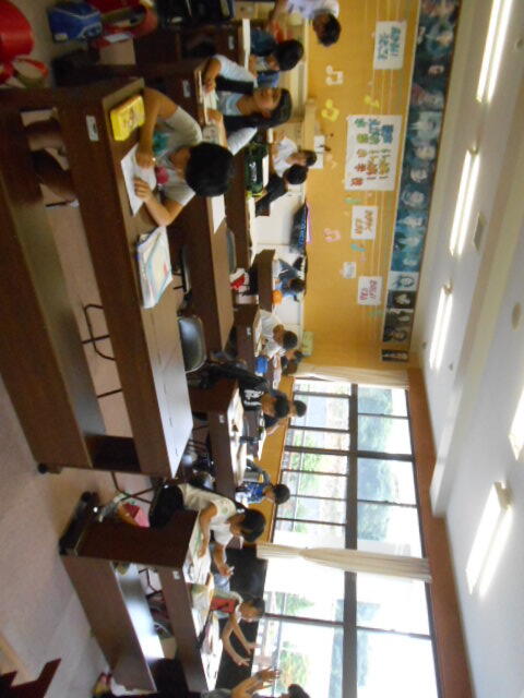 少し疲れ気味の児童もいますが、授業で学んだ内容を確認しています。予習をしている児童も数人います。