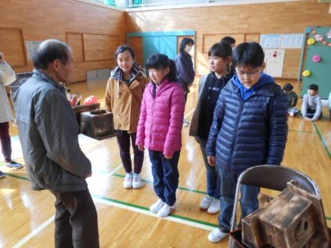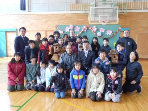 地域の方から、この学び舎を巣立つ6年生に手作りの巣箱をいただきました。