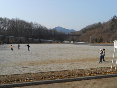 登校後、毎朝元気に校庭で遊ぶ児童ですが、6年生との遊びは今日が最後となります。