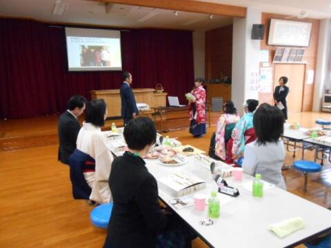 昼食をいただきながら、卒業生4人の門出を保護者と全職員で祝いました。