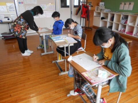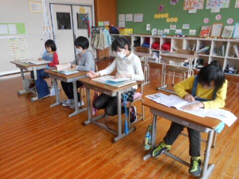 2・3年生は、読書の前に、6年生への感謝の言葉を考えています。