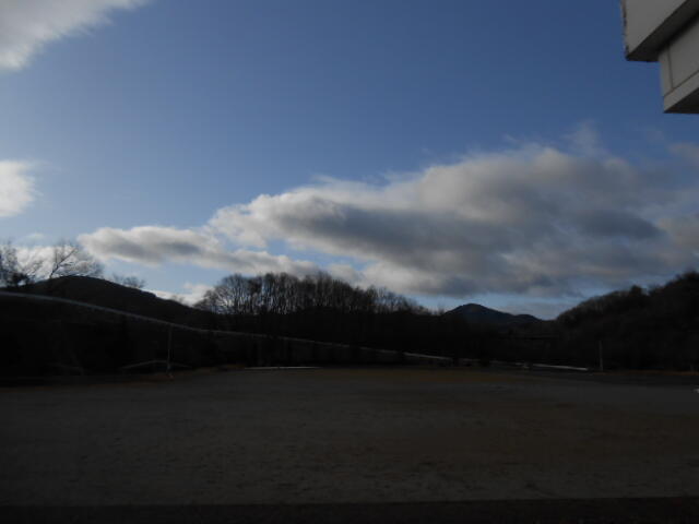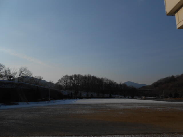 夜に降った雪が少し残っています。風もなく晴れています。
