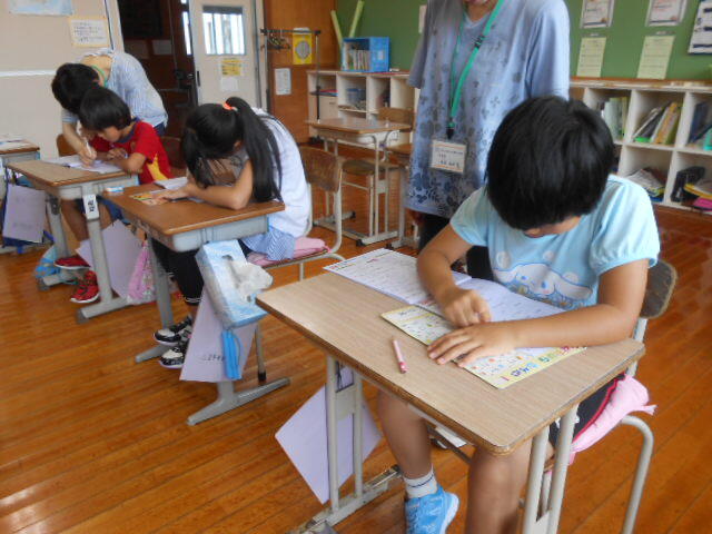 漢字検定過去問題を使って前年度までの力が身に付いているか確認しました。ほぼ全員がクリアーしました。 写真は採点の様子です。