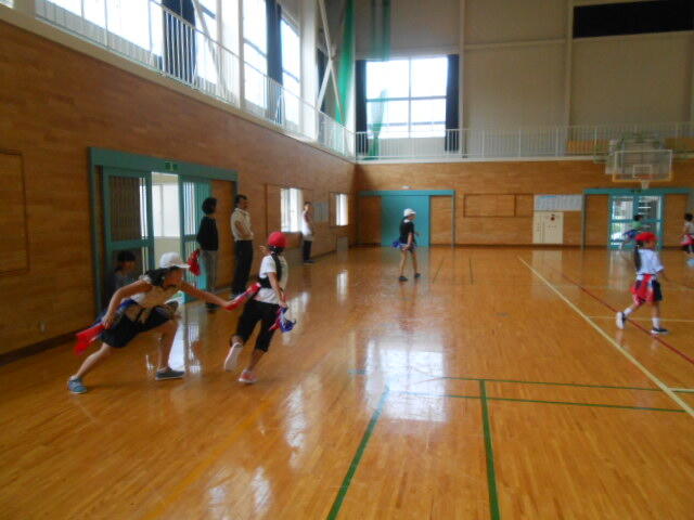 久しぶりの業前運動は、ドッヂビーではなく、タグッポとりを行いました。