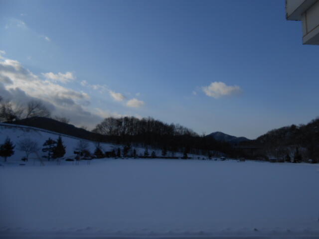 7時頃、雪が舞っていましたが今は晴れています。風はなく、曇っています。