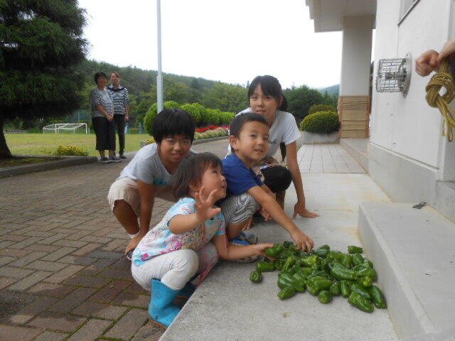 ピーマンがたくさん収穫できました。妹や弟もびっくりしています。