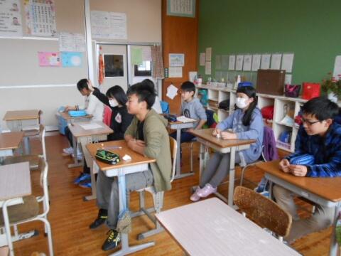 今朝、数名の児童(卒業生も)が声を掛け合って学校に遊びに来ました。