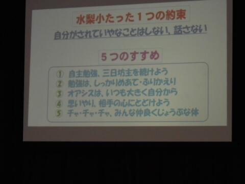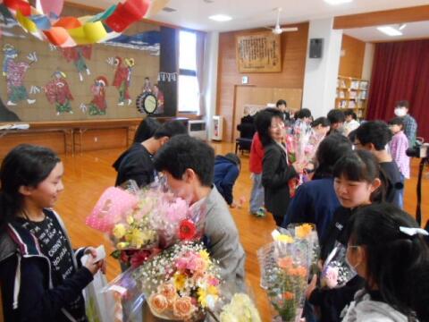 先生方からは、「弱い心に負けないで頑張ってほしい。」「水梨小学校児童の良さは、勉強も運動もでき、男女仲が良いことです。」「もっもっとみんなと話したかった。遊びたかった。」「この数年で皆さんは大きくなりました。みなさんの成長が楽しみでした。」等の思い出や励ましの言葉をいただきました。