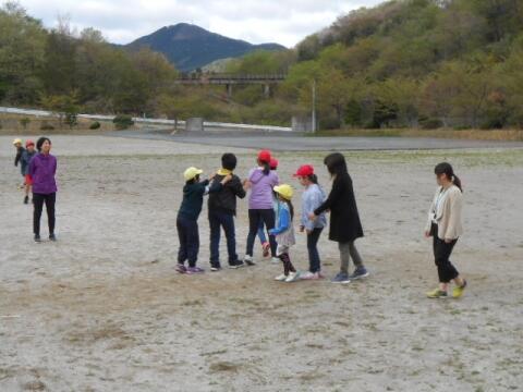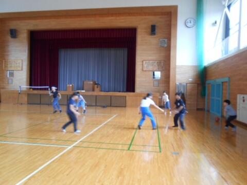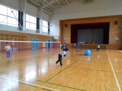 数名は、近くの林の探検へ、残った児童は、バドミントン。