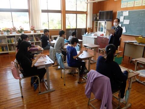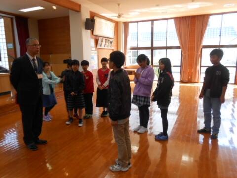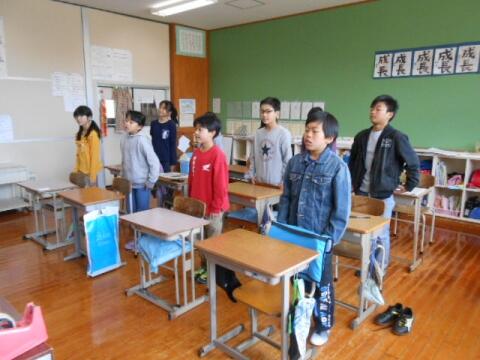 「先生の指導は厳しかったけど、漢字テストで100点取れました。ありがとうございました。」「先生との勉強は楽しかった。苦手な勉強を頑張れました。」「修学旅行のバスの中でいろいろな話ができたことが楽しかった。」「給食の時の話が楽しかった。」「休み時間の鬼ごっこが楽しかった。」「いろいろな仕事を頑張っていただきました。ありがとうございました。」等、児童から別れの言葉を述べてお送りしました。