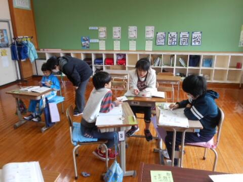 修了式まで数日。国語に限らず、算数のまとめにも取り組んでいます。