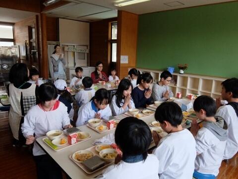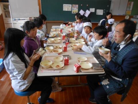少し風が強めですが、外で会話を楽しみながらいただいた児童もいました。
