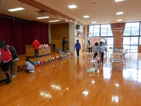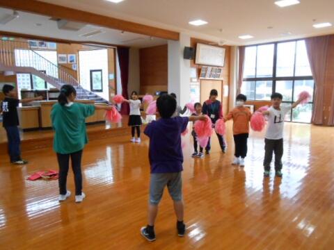 離任式後、在校生で入学式後に行うアトラクションの練習を行いました。