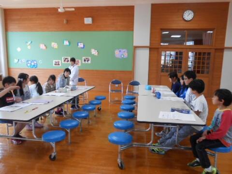 「なんでも進んでやる5年生。外で遊ぶのが好きな3年生。いつも楽しい4年生。みんなをまとめるリーダーの6年生。早く仲良くなって、楽しい学校生活を送りましょう。」