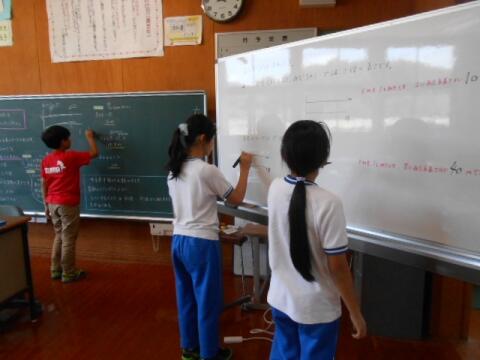 算数のまとめの学習では「みんなで話し合うこと」、「分かりやすい説明」を通して、思考力を高めています。