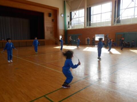 高学年は3分、中学年は2分、低学年は1分間跳び続けました。