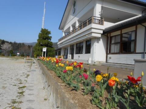 学校前の学校田です。児童と地域の皆様で田植えを行いました。