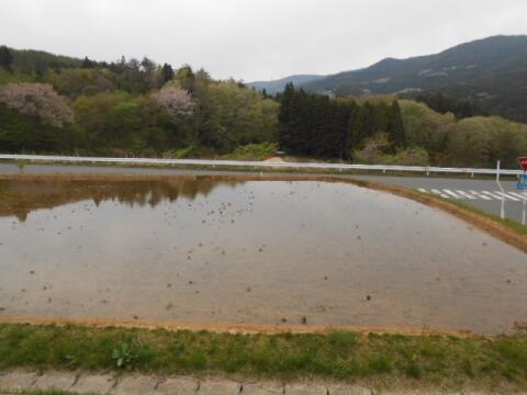 連休前には、田んぼに水が張られ代掻き等の準備を待っている状態です。