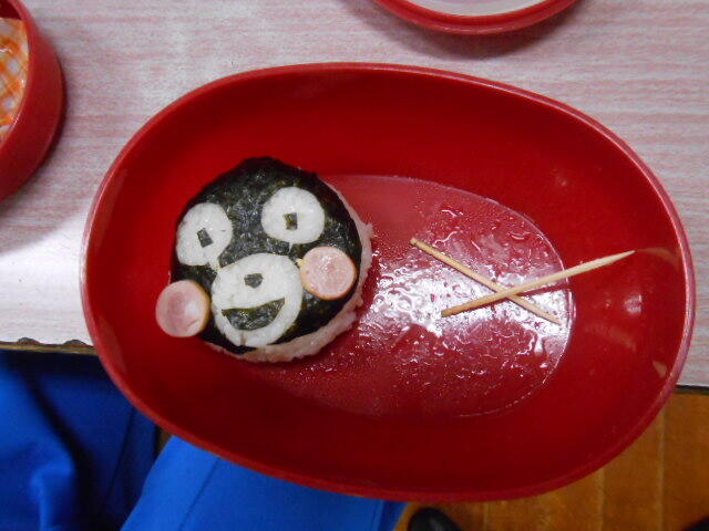 「お父さんがくまモンのおにぎりを作ってくれました。耳は食べてしまいました。」