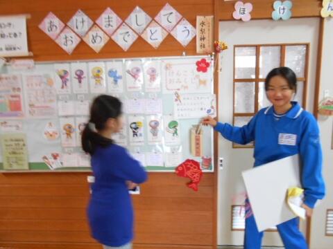 新年の保健室前廊下には、児童の健康を占うおみくじが設置されました。
