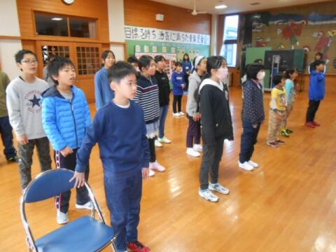 とても寒い朝でしたが、朝会では、「校歌」と「旅立ちの日に」を歌いました。