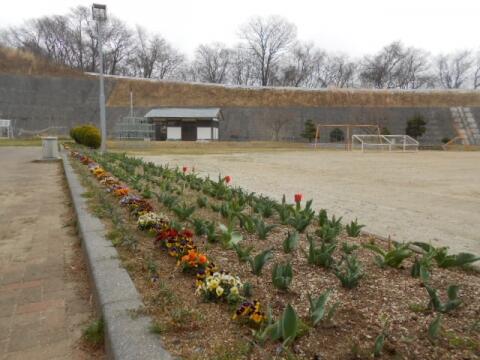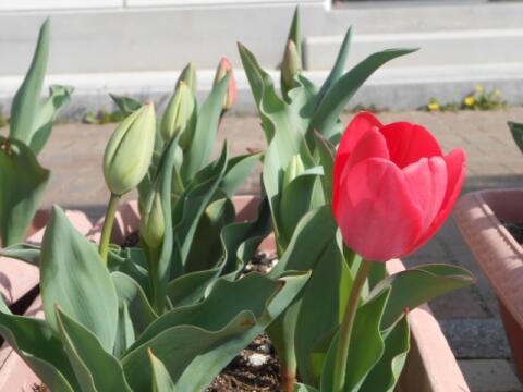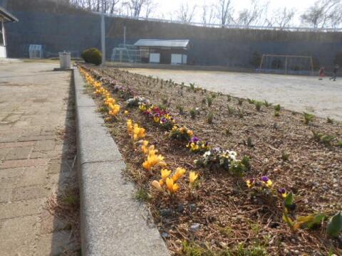 ここ数日の陽気で、校舎前花壇の花も芽を出しつつあります。