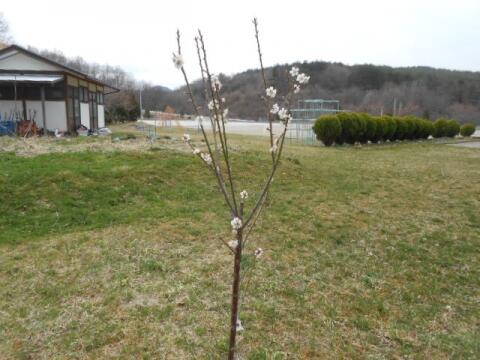 昨年植樹した梅の木。数日前に、ようやく開花しました。
