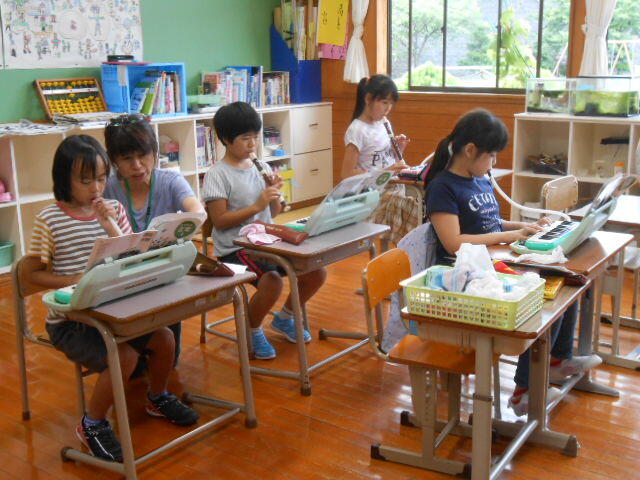 3・4年生の音楽では、リコーダーや鍵盤ハーモニカを使った合奏に取り組んでいます。