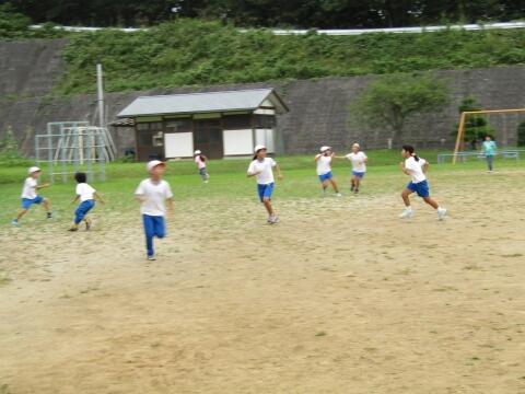 水梨小では、毎週水曜日の朝に「業前運動」として、運動保健委員会の児童が計画した運動を行っています。本日は「ふえ鬼」。タッチされたら、鬼になる鬼ごっこなので、鬼の数はどんどん増えていきます。残る一人にタッチすべく、みんなで囲んで追いかける姿はとてもほほえましく、逃げ切れ!と応援にも力が入ります。