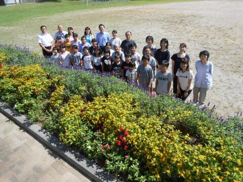 「気仙沼市花いっぱいコンクール」で優秀賞をいただきました。今年の花は、低温続きだったこともあり、例年よりも小ぶりです。花壇を前に、全校児童で記念撮影を行いました。