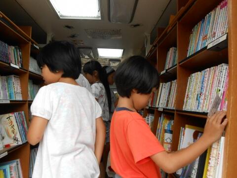 気仙沼市図書館の移動図書館「おおぞら号」が来校しました。ほとんどの児童が、2冊ずつ本を借りました。読書を通して、様々なことに気づき、さらに社会性が身に付くことを願っています。