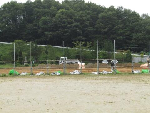 震災後、本校の校庭の半分には仮設住宅が建設されていましたが、今年7月から撤去作業が進み、本日ついにずっと覆われていた校庭の向こう側が見えました。