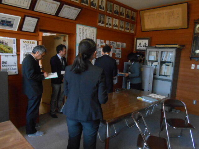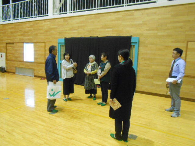 8日には、水梨小学校の体育館で音楽交流を予定していますが、事務局の2名(写真左から2人目・3人目)がお出でになり下見をしました。