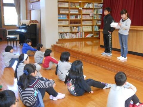 11月の保健目標は「思いやりの心で友達と接しよう」(中学年)でした。代表児童は、「これからも優しい言葉でお話ししようと思います。」と振り返りました。