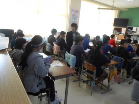 6年生は、進学先の松岩中学校の先生による英語の出前授業を体験しました。