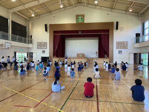 ↑1年生が音楽に合わせて楽しそうに踊っていました  ↑6年生は立ち稽古に突入です。担任と一緒に創り上げていっています。