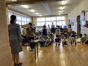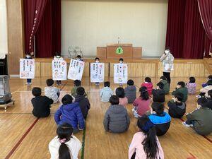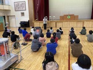 今日の開校記念行事には,卒業生で,現在気仙沼消防署長を務めていらっしゃる戸羽一明様にお出でいただき,当時の中井小学校の思い出や,中井小学校の児童に期待すること等をお話しいただきました。